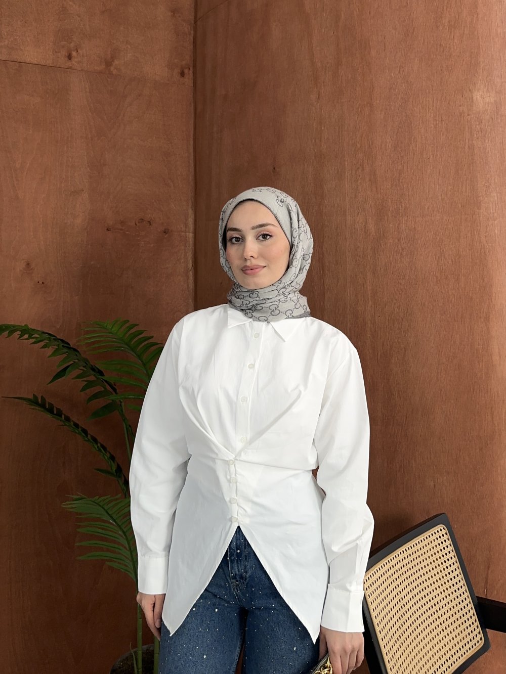 Belden Oturtmalı Gömlek Beyaz