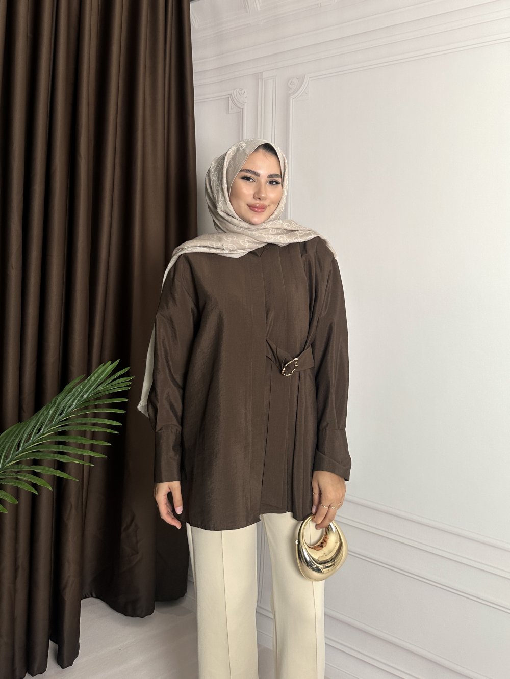 BELİ TOKALI GÖMLEK Acı Kahve