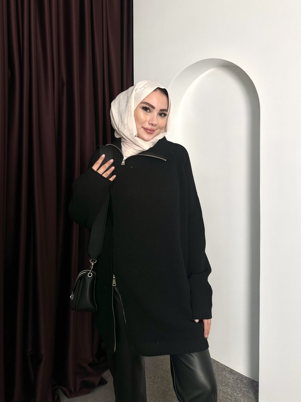 ÇİFT FERMUAR TRİKO KAZAK Siyah