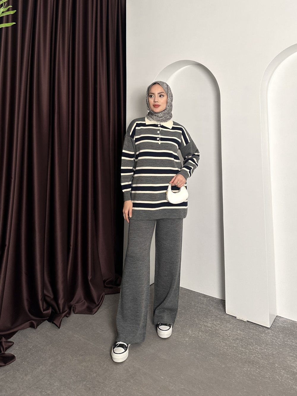 Çizgili Polo Yaka Takım Gün boyu süren konfor, zamansız çizgilerle buluştu. Yumuşacık dokusu ve rahat kalıbıyla yeni sezon triko takımımız stoklarda.
