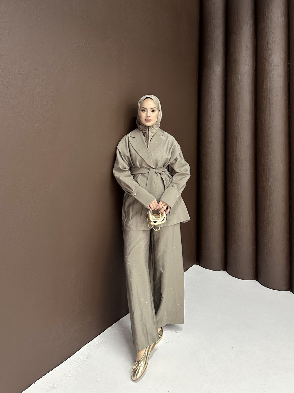• Drape Dökümlü Takım Kahverengi
