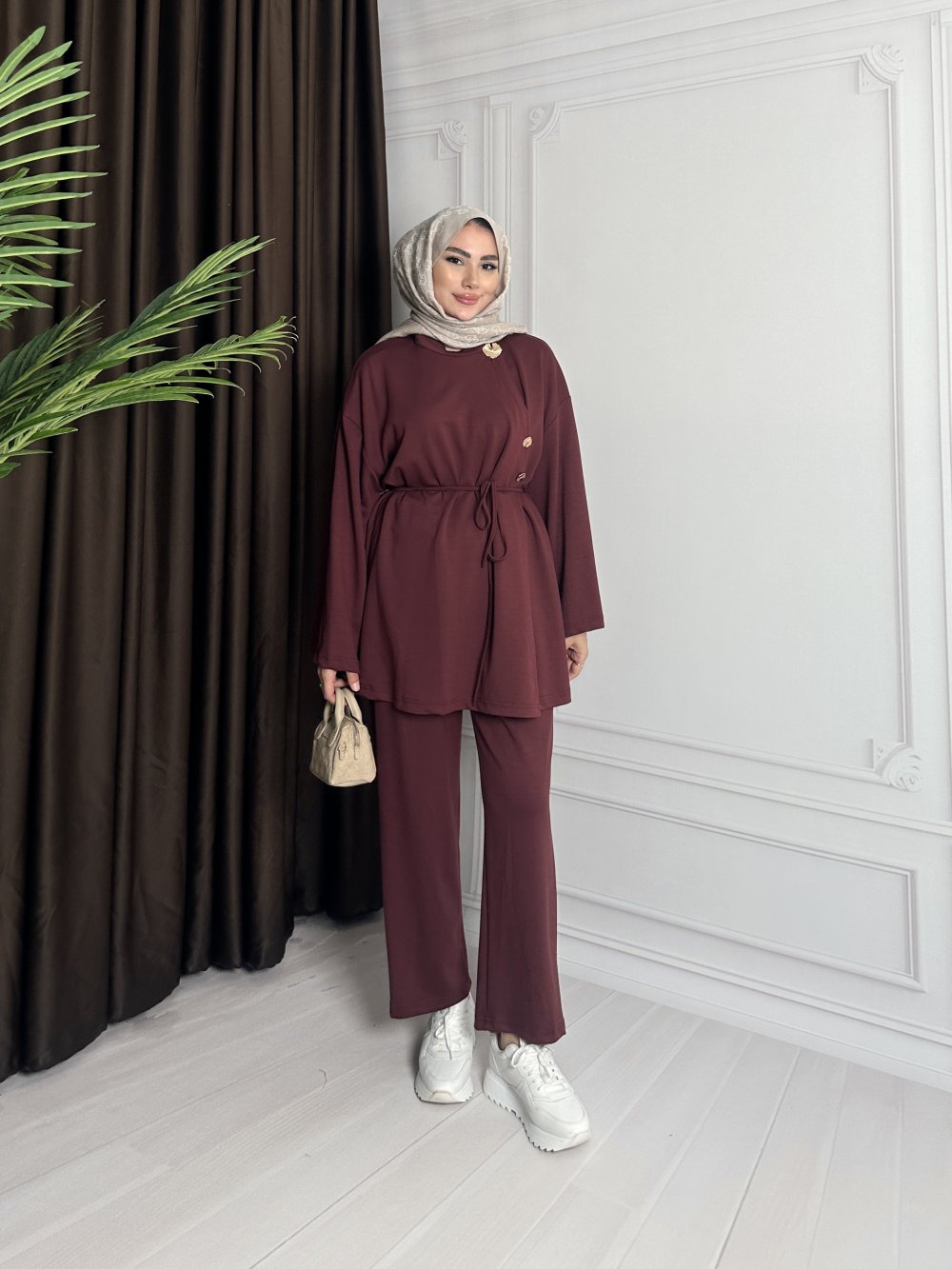 GOLD ÇİÇEK DETAY TAKIM Bordo
