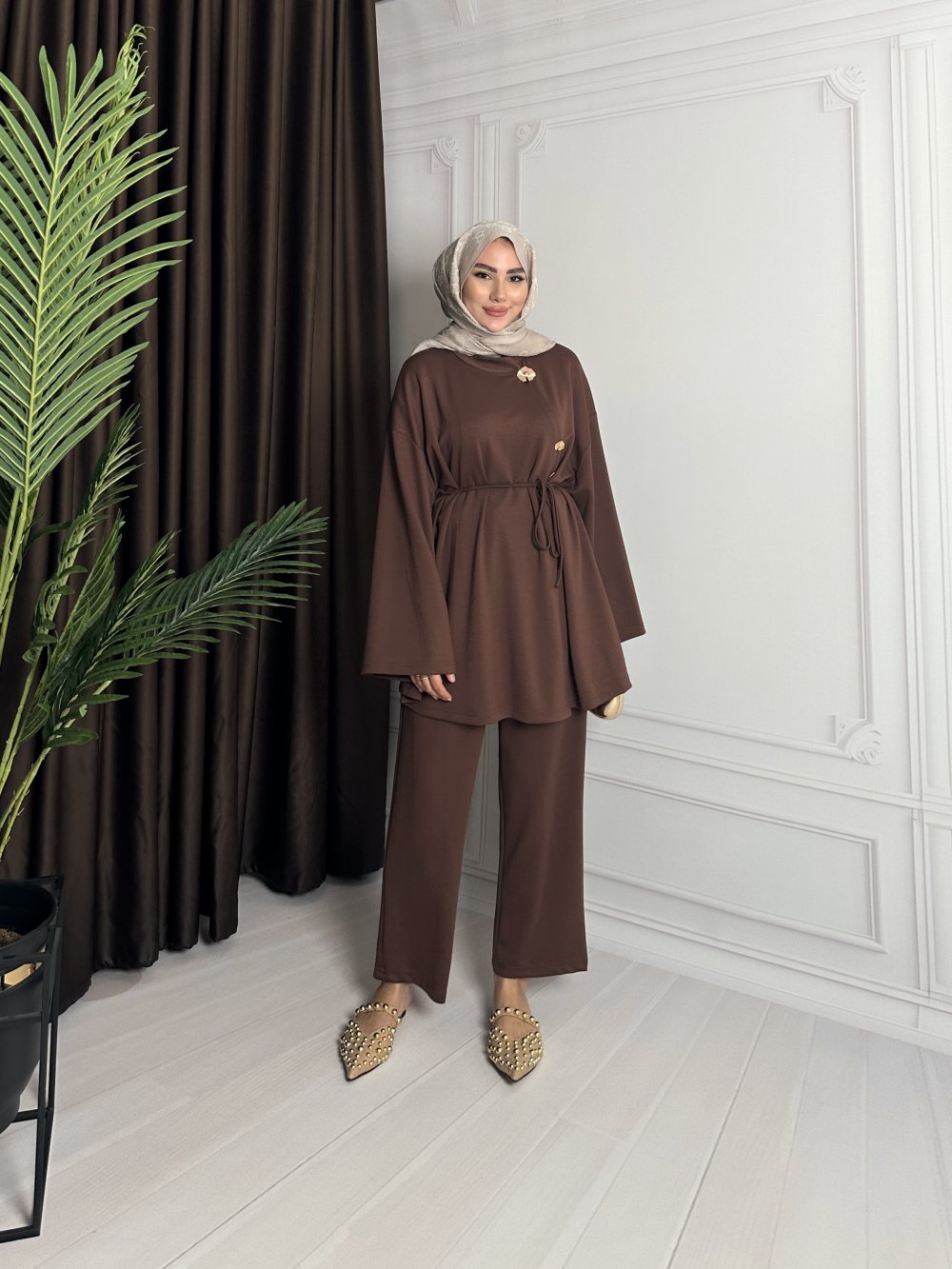 GOLD ÇİÇEK DETAY TAKIM Kahverengi