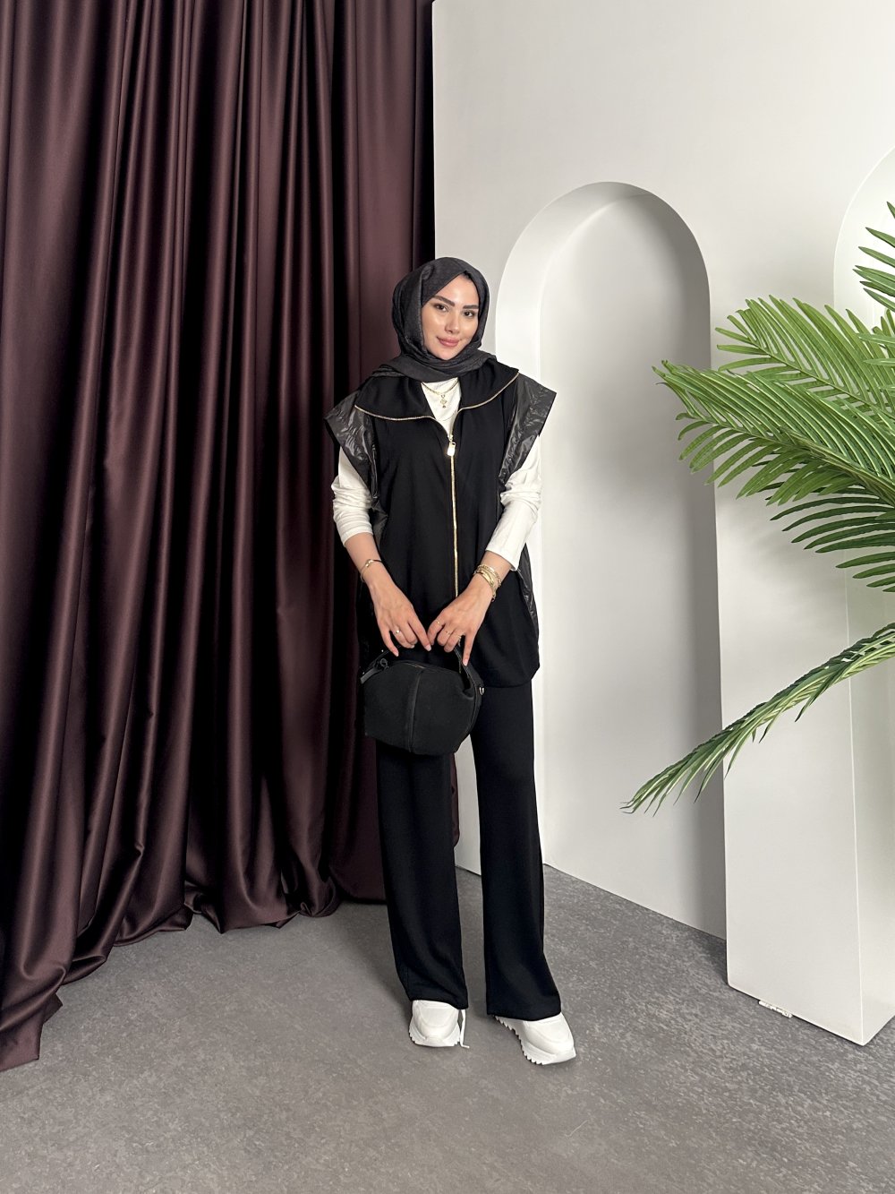 GOLD DETAY YELEKLİ TAKIM Siyah