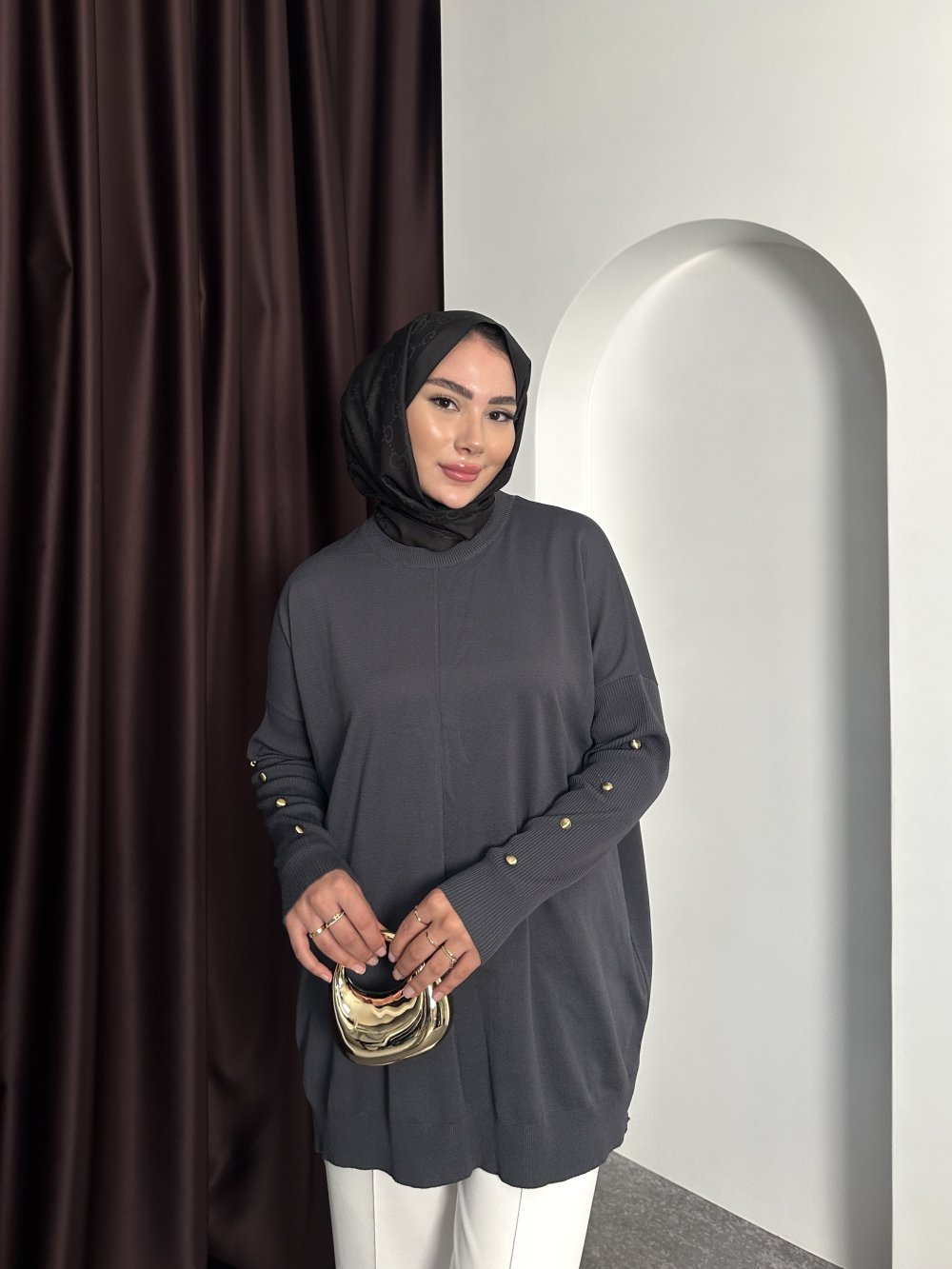 KOLU GOLD DETAY TRİKO Antrasit