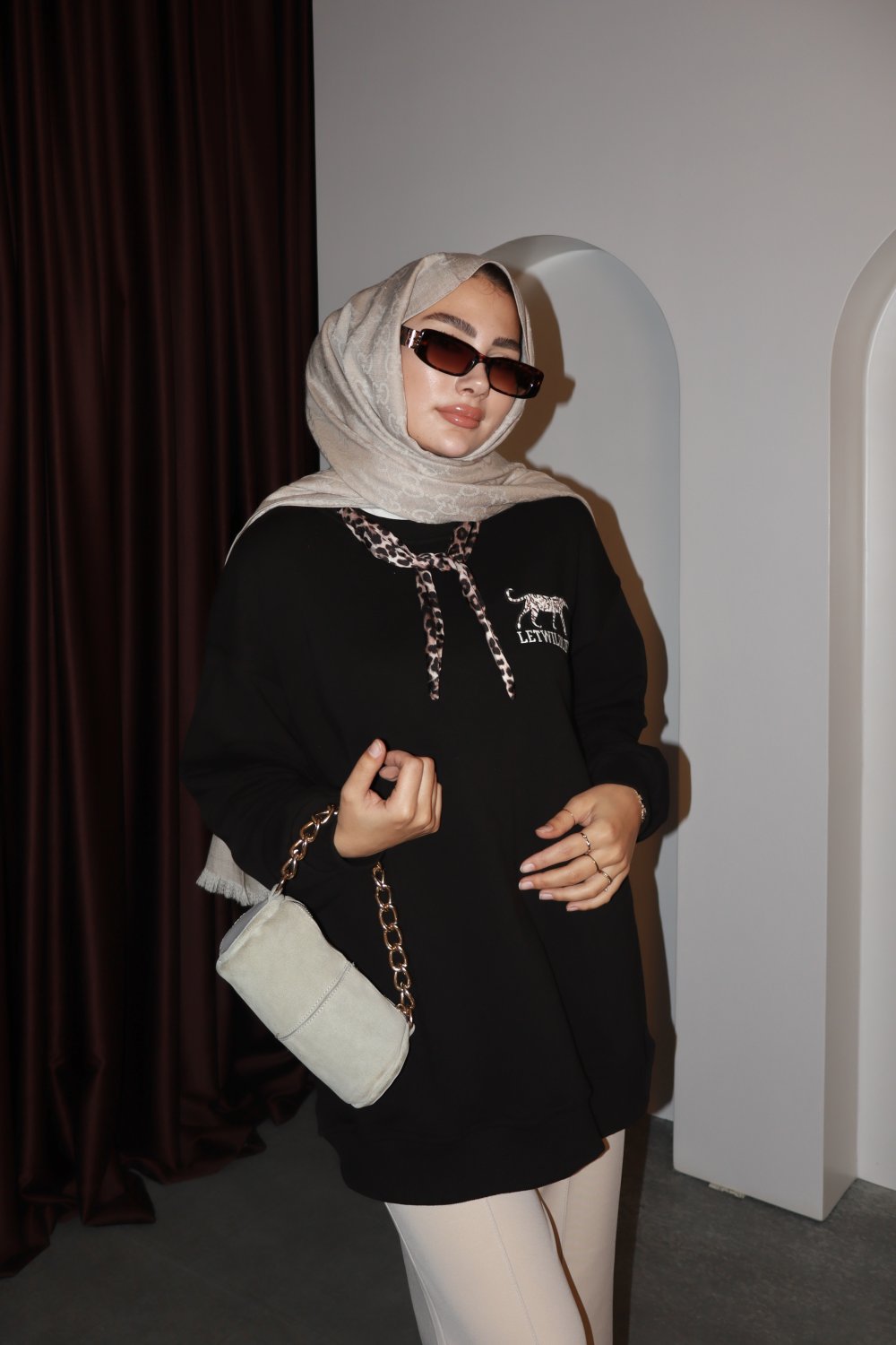 LEOPAR FULARLI SWEATSHİRT Siyah