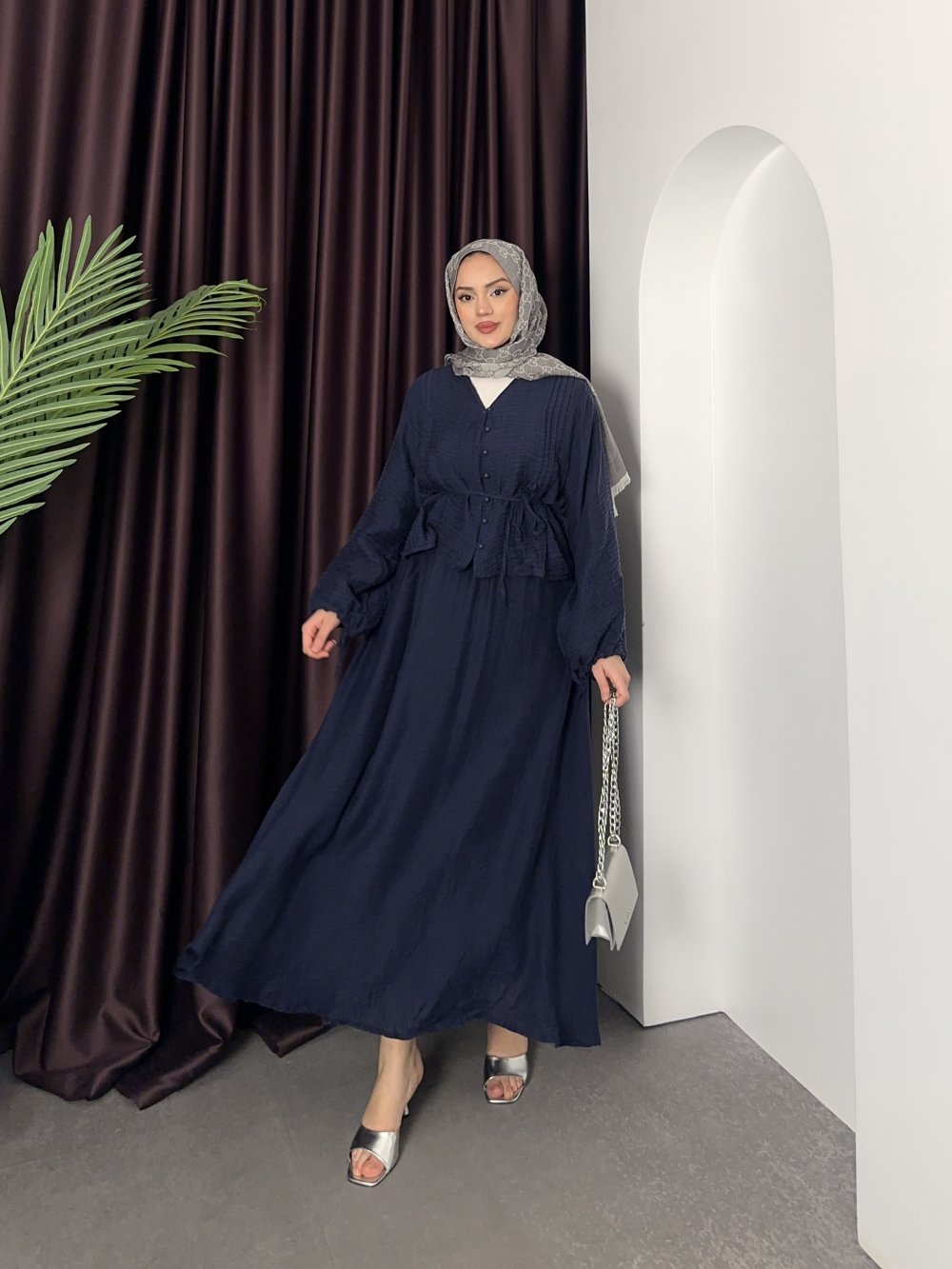 Müslin Etekli Takım Lacivert