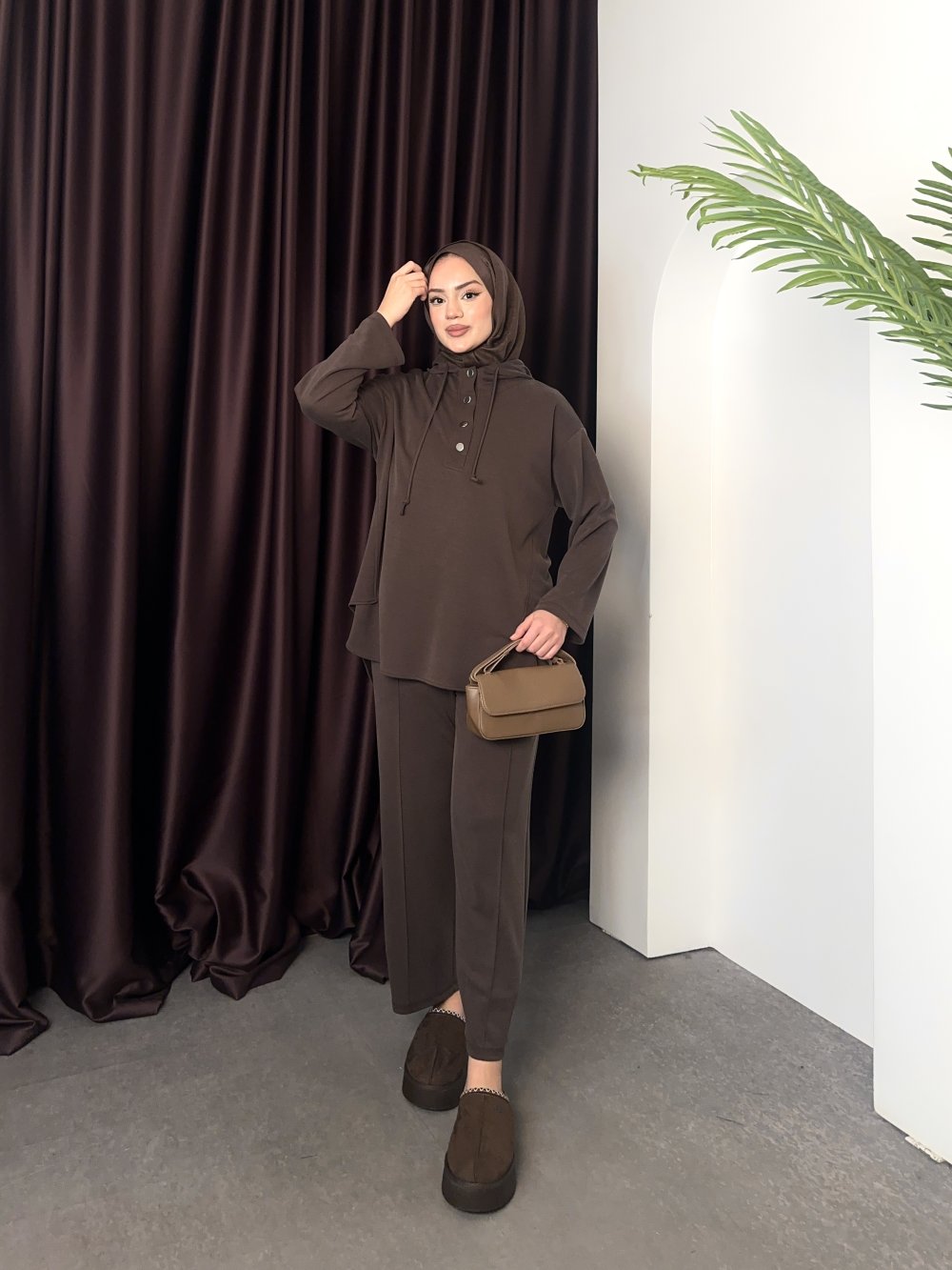 HAKİM YAKA TENSEL TAKIM Kahverengi