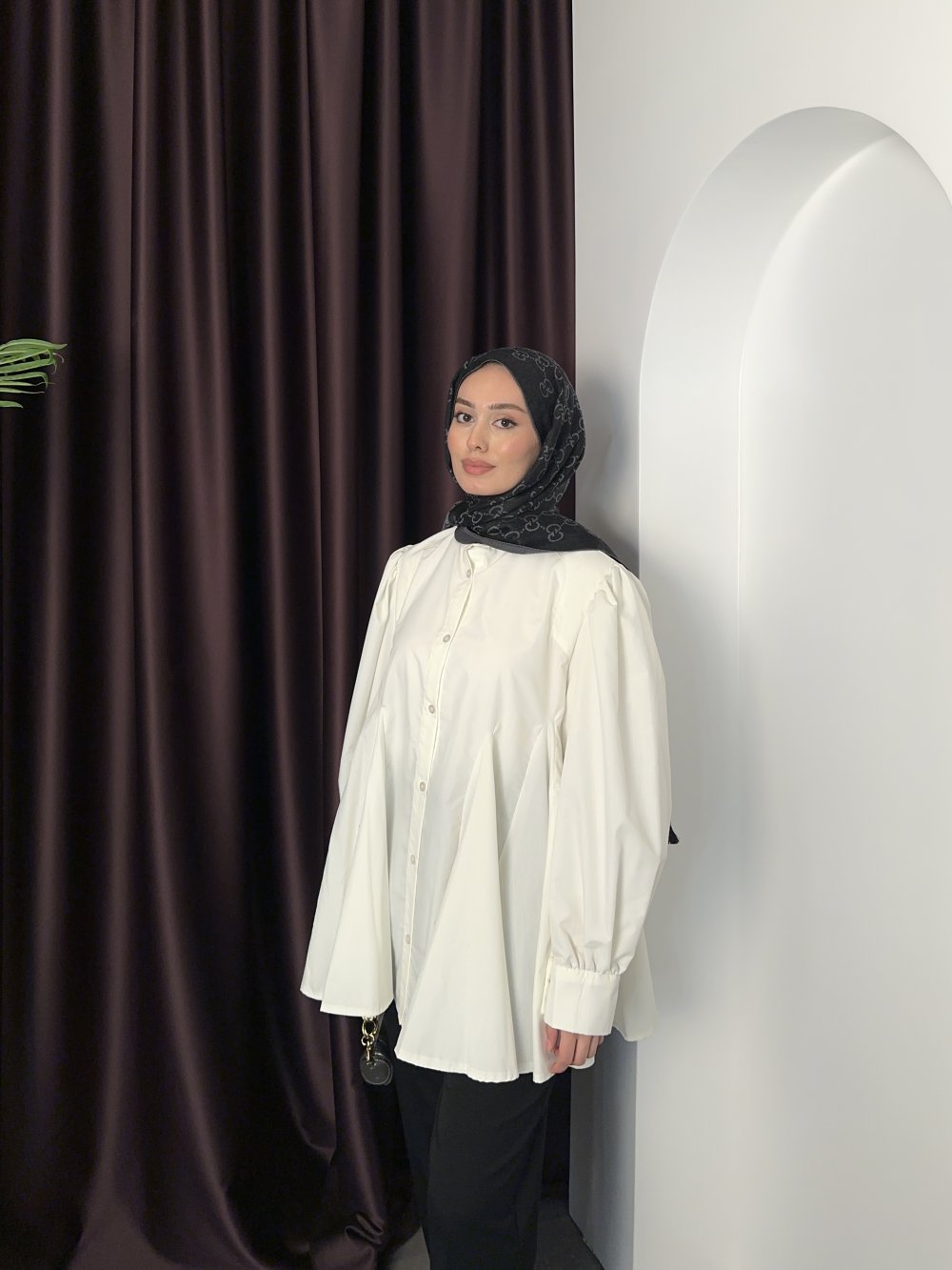Pileli Kloş Gömlek Beyaz