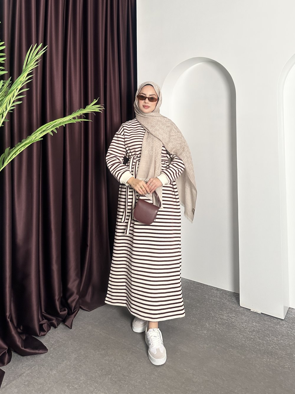 Şardonlu Çizgili Elbise zamansız desenler, modern dokunuşlar. Çizgilerin ritmini yakala. ? Günün kombini için anahtar parça belli. 1.30 cm 3 iplik şardonludur.