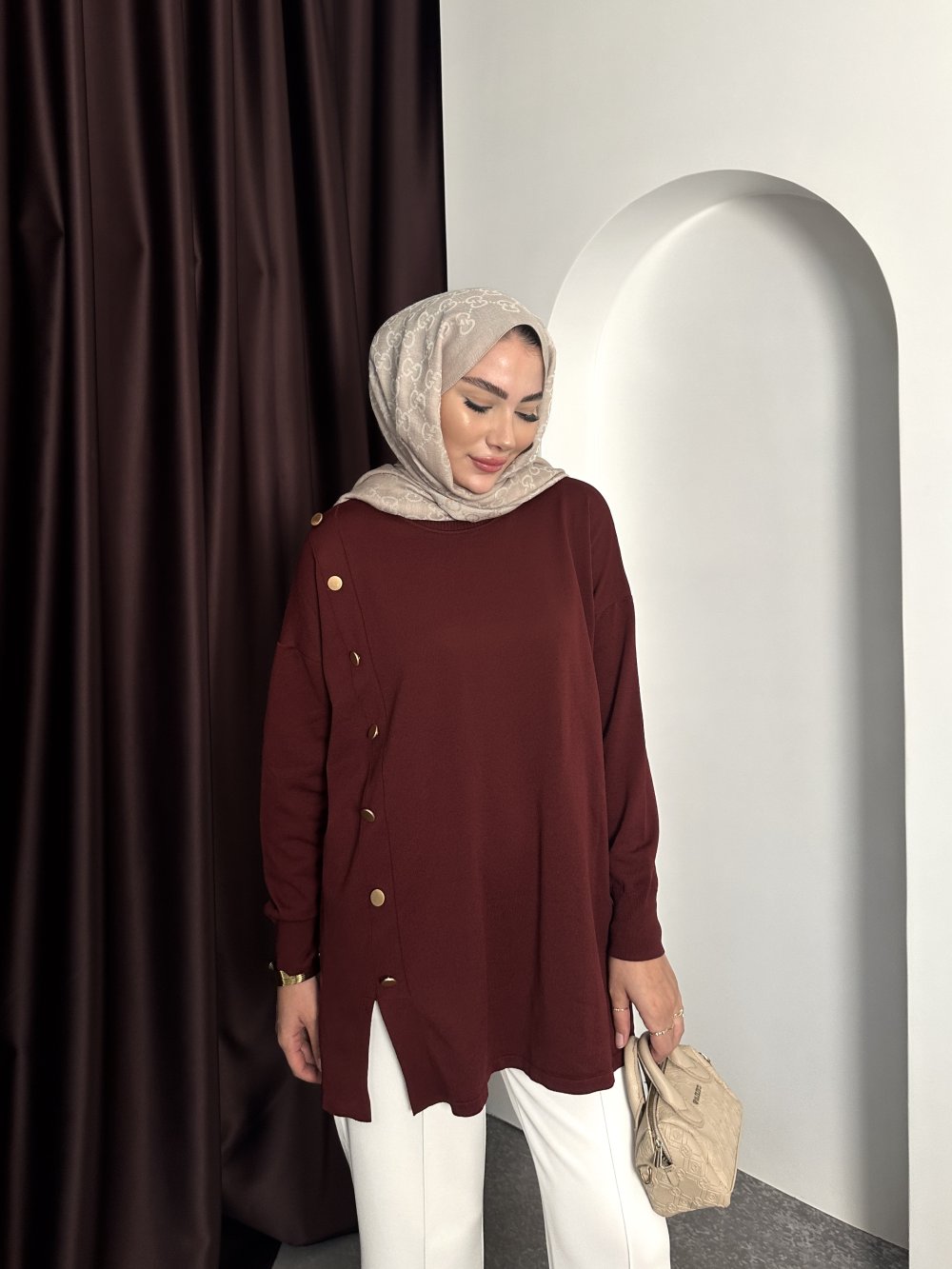 ŞERİT GOLD DÜĞMELİ TRİKO Bordo