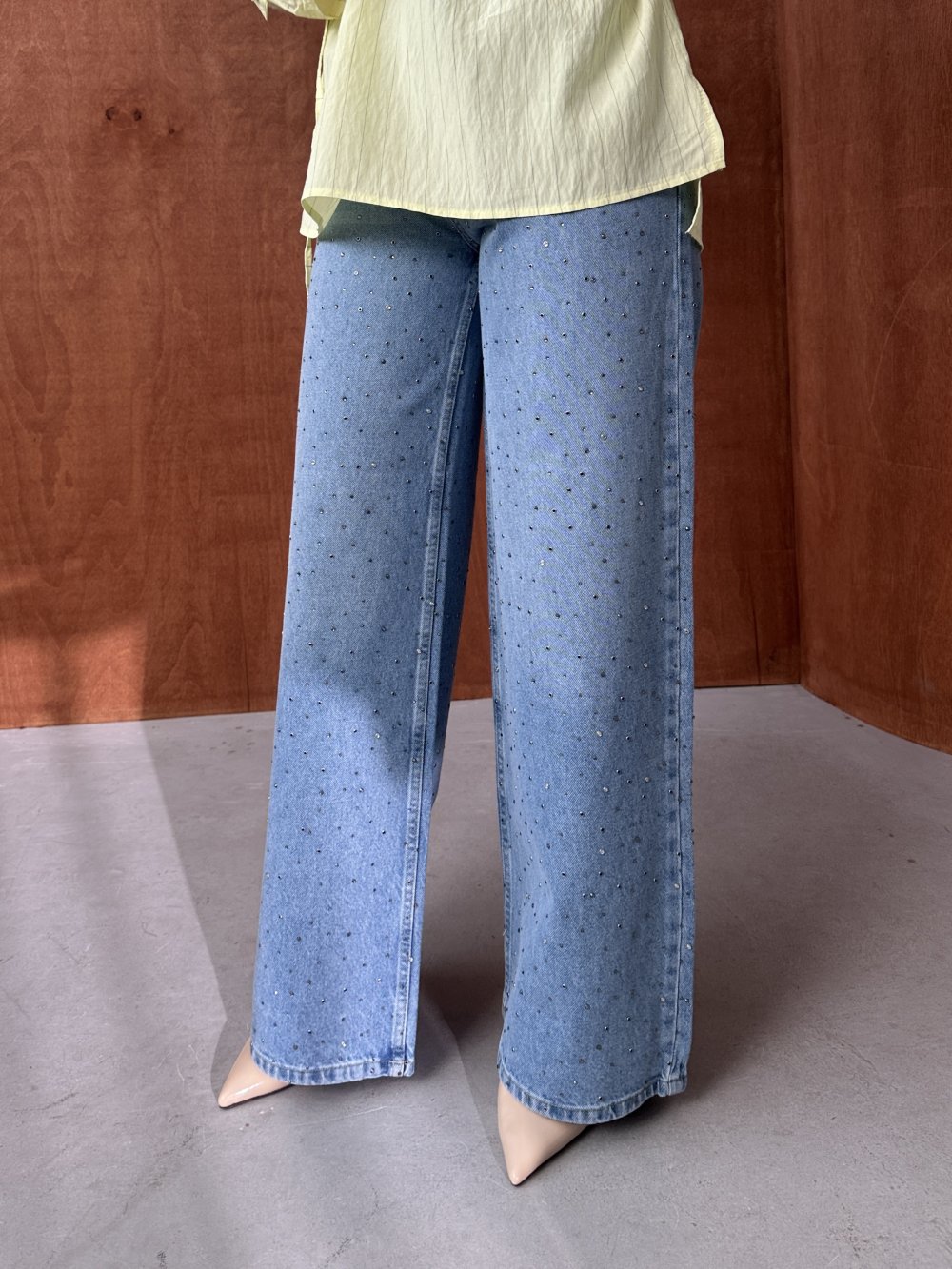 Taşlı Wide Leg Jean Açık Mavi